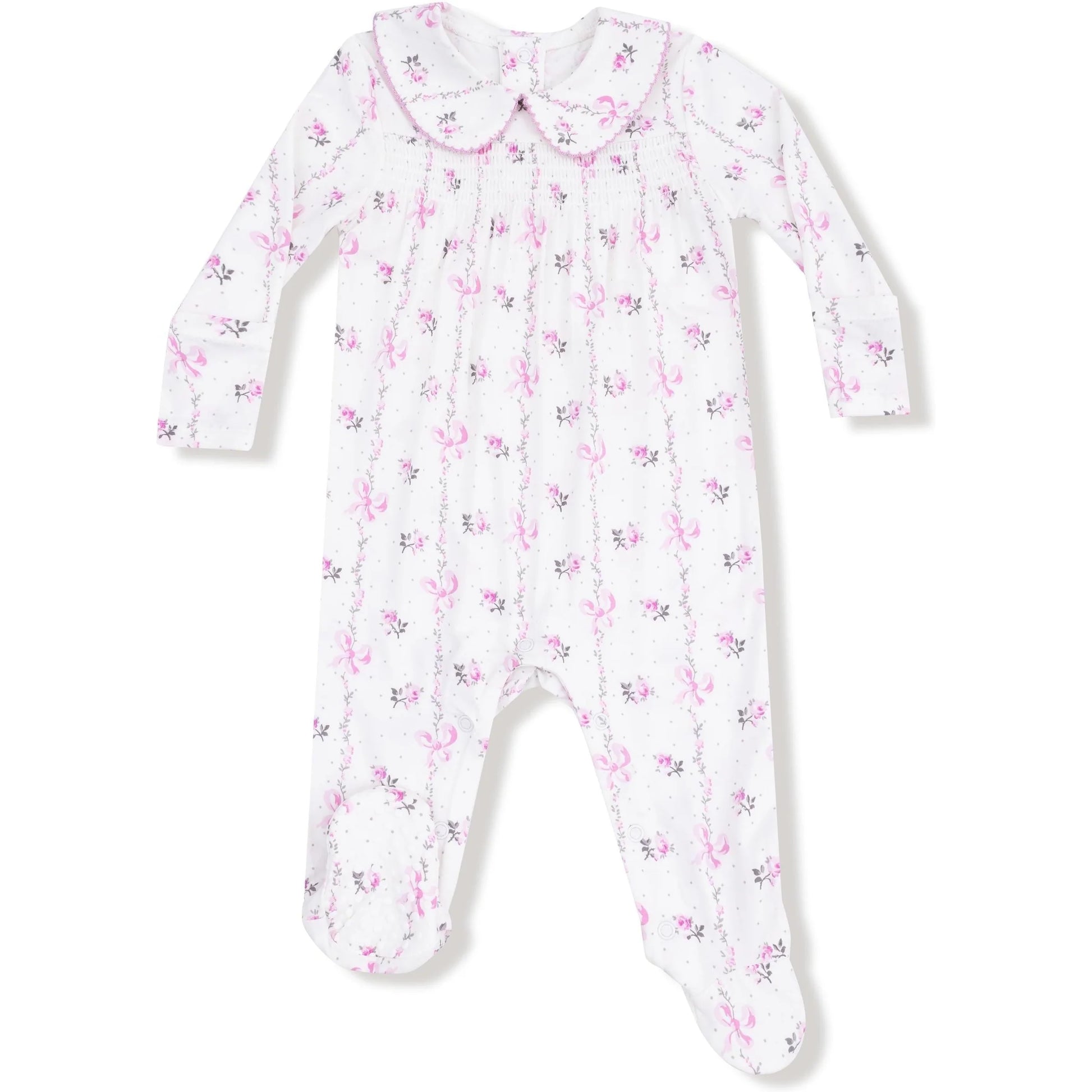 Dainty Buds And Bows Stripe - Smocked Peter Pan Snap Footie